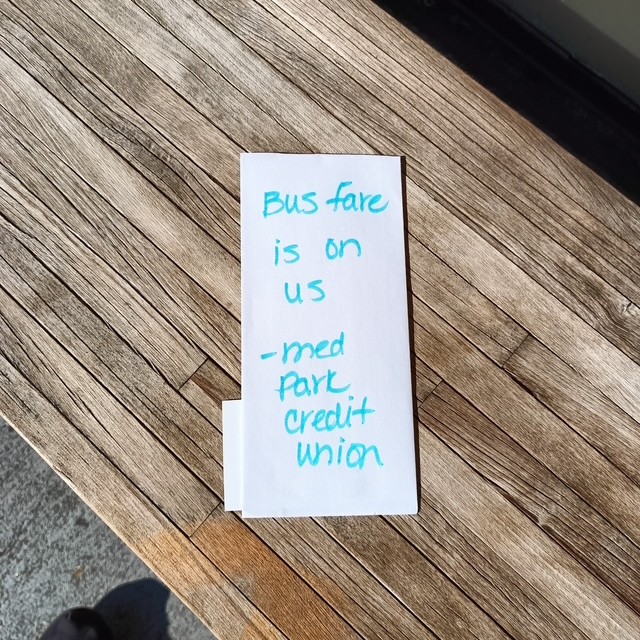 We left a little kindness at the bus stop – just enough for someone’s ride home.